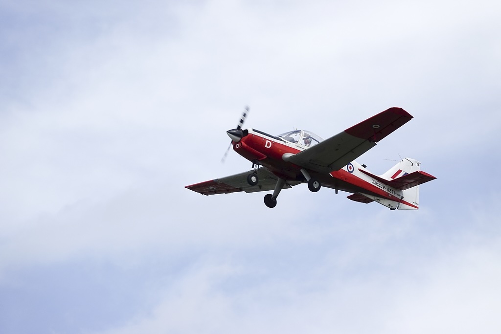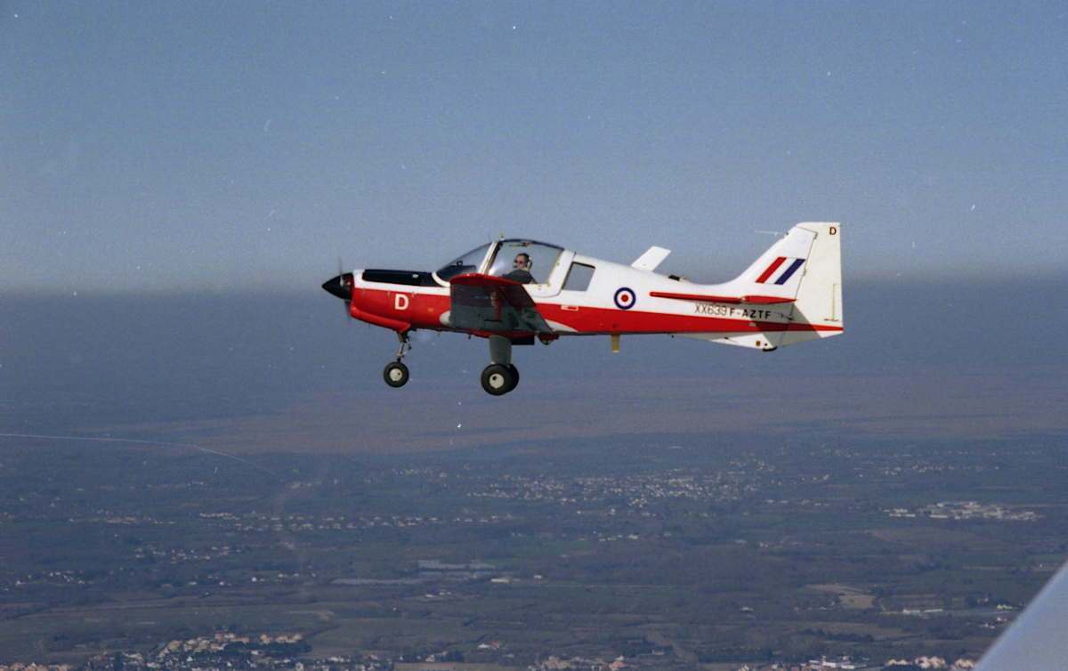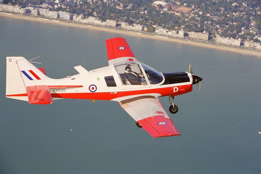 Scottish Aviation Bulldog T.Mk-1Développé comme un biplace côte à côte d’entrainement militaire de début à partir du B.121 Pup, le Beagle B.125 Bulldog se différenciait par une verrière éjectable coulissant vers l’arrière et un moteur de 200 ch qui permettait de passer toute la voltige. La structure était bien sûr renforcée, la voilure agrandie ainsi que les réservoirs, les roues de diamètre plus important. Derrière le pilote et l’instructeur un second élève ou un observateur pouvaient prendre place. Cet avion avait la particularité de disposer de 4 points sous voilure, permettant d’emporter des containers avec mitrailleuses de 7,62 mm, des missiles air-sol, des lance-grenades, des bombes de 50 kg… Aucun Bulldog ne fut livré avec un système de tir et il semble que la Suède ait été le seul pays à avoir testé l’emport de charges sous voilure.Le prototype du B.125 (immatriculé G-AEXH, c/n 001) effectua son premier vol à Shoreham le 19 mai 1969. Quelques semaines après le premier vol, la Force aérienne suédoise passait commande de 58 exemplaires à livrer à partir d’. Mais Beagle déposait le bilan le . Scottish Aviation racheta donc les droits; et la production fut transférée à Prestwick, ou fut achevé le second prototype [G-AXIG, c/n 002], qui prit l’air le .