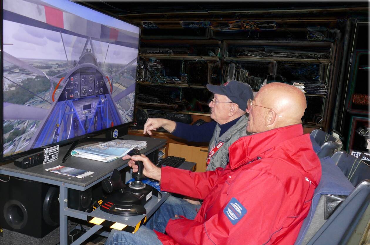 Les enfants qui viennent avec leurs parents visiter le musée, peuvent se divertir en jouant au simulateur de vol avec un « moniteur » bénévole qui les guidera pour piloter virtuellement nos avions.